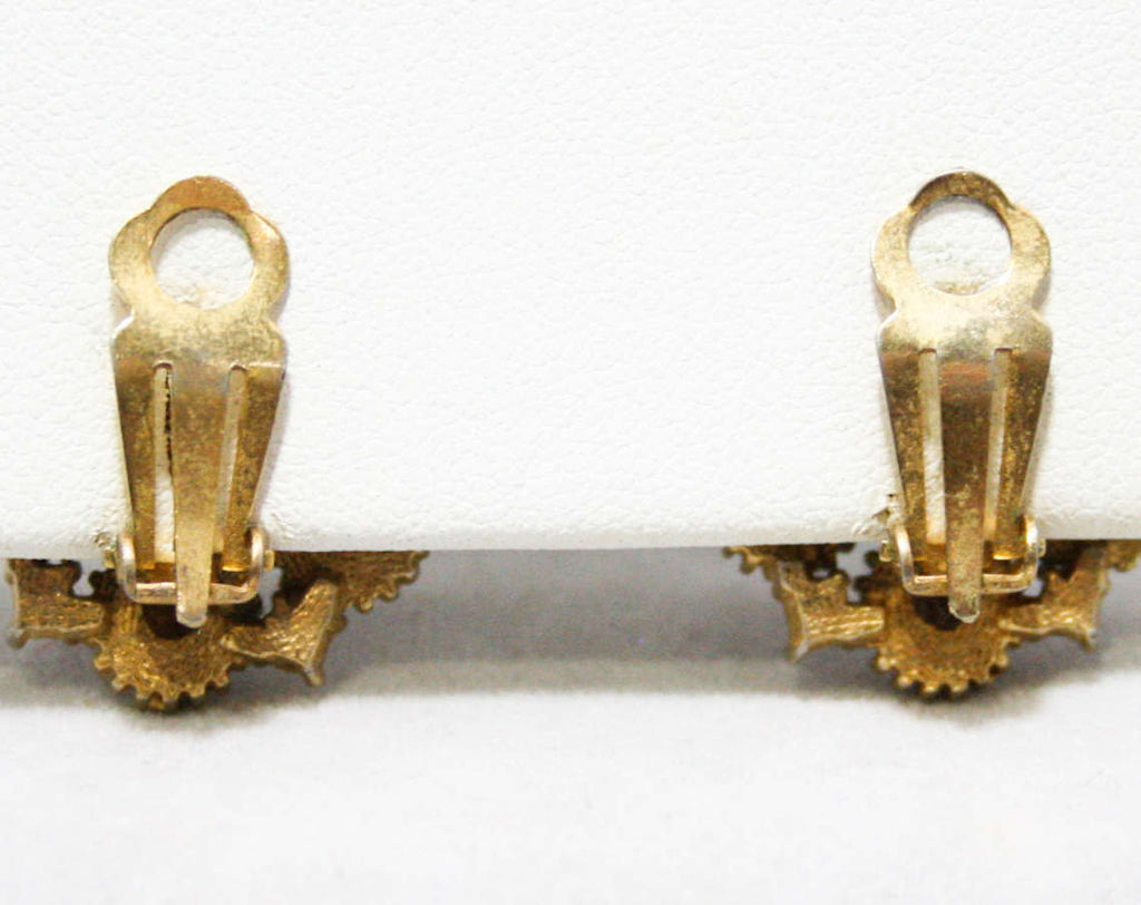 Gorgeous fine sparkles to these flower-like earrings!  They're 1960s era clip earrings with a dimensional design and rhinestone accents.